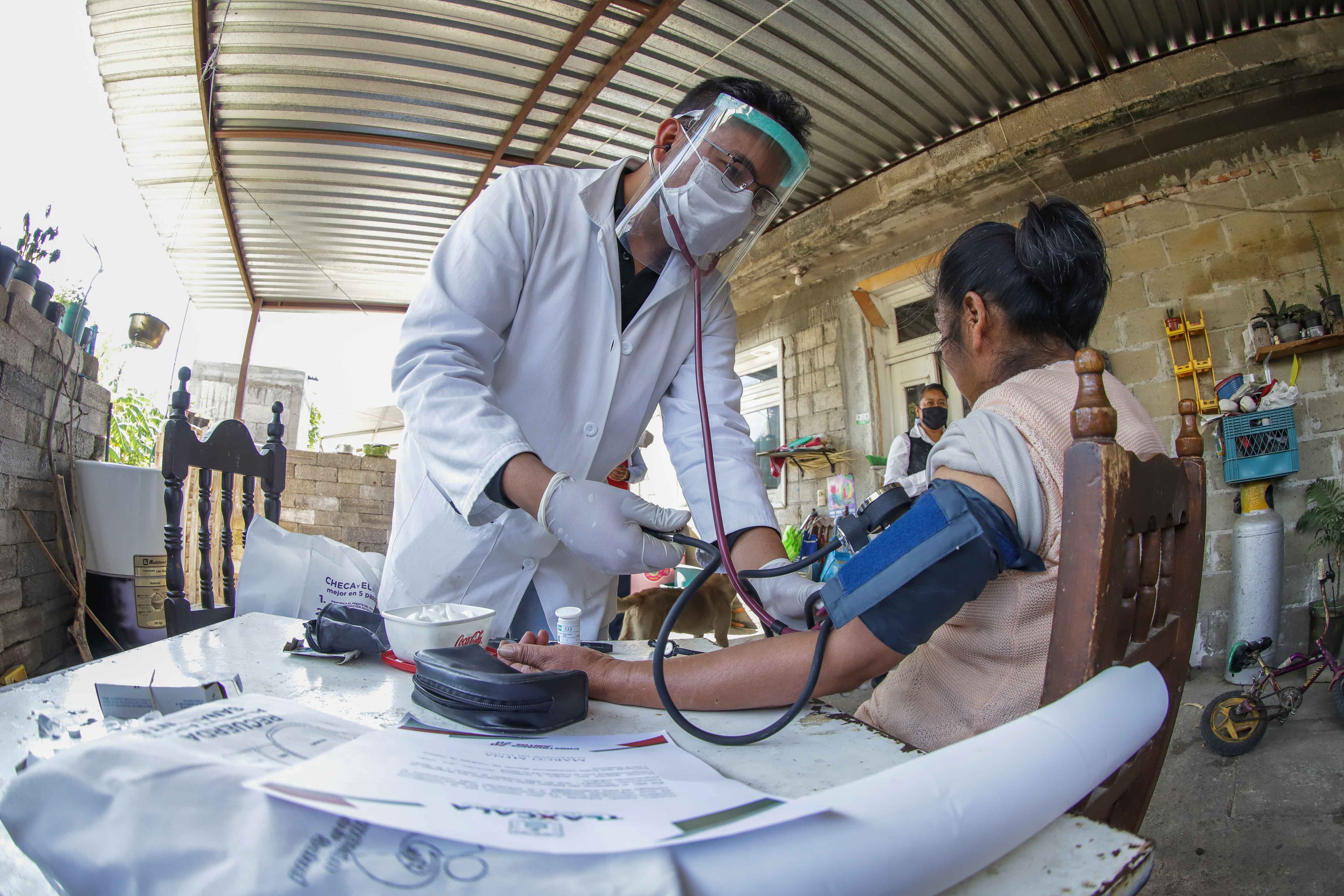 Como parte de la atención, las brigadas brindan consultas médicas, aplican un cuestionario de sintomatología de Covid-19, toman la presión arterial y niveles de glucosa de las personas, difunden información nutricional y entregan medicamentos y vitaminas, así como material informativo para que los pacientes den seguimiento a sus tratamientos.