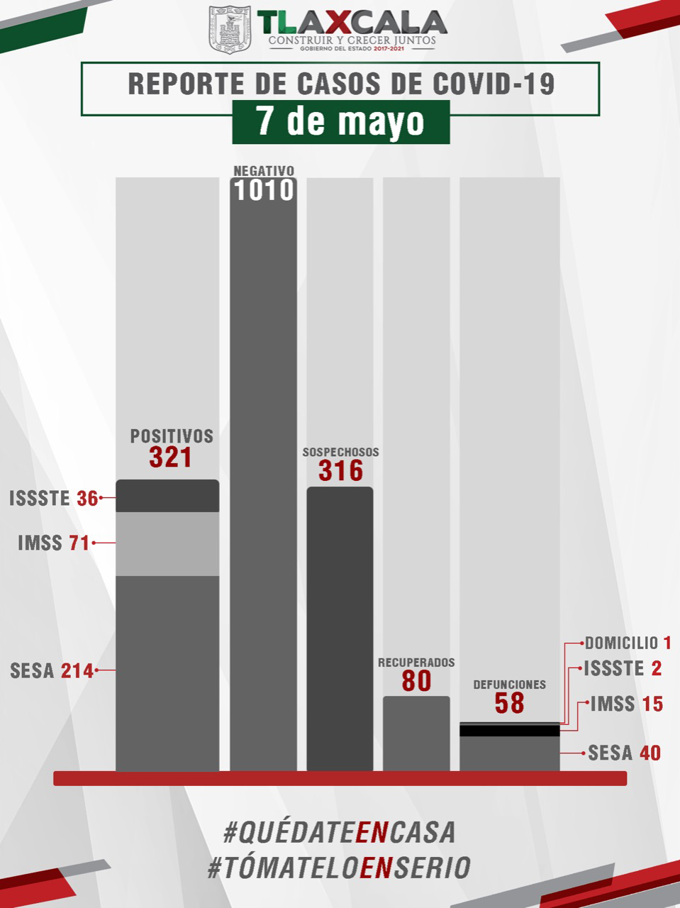 De esta manera, la entidad registra 321 contagios, 80 personas recuperadas de la enfermedad y 58 fallecimientos.