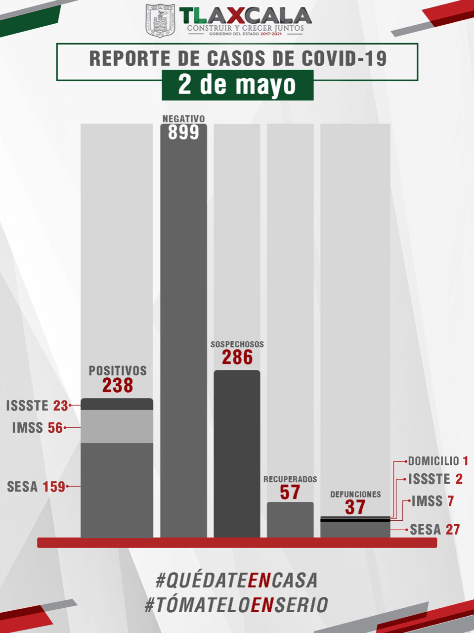 La Secretaría de Salud (SESA) confirmó tres casos más y un fallecimiento de Covid-19 en Tlaxcala.