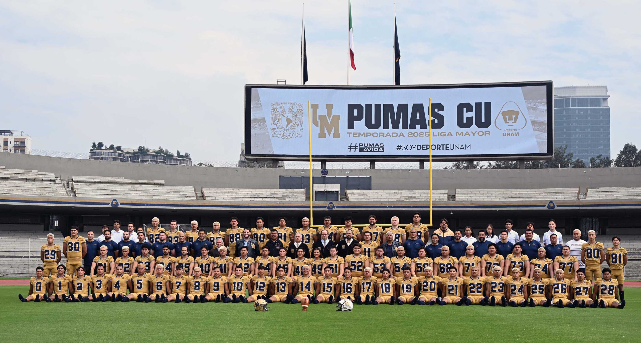 • Encabezó la presentación del equipo y también se tomó la fotografía oficial con el equipo Pumas CU de futbol americano 2025