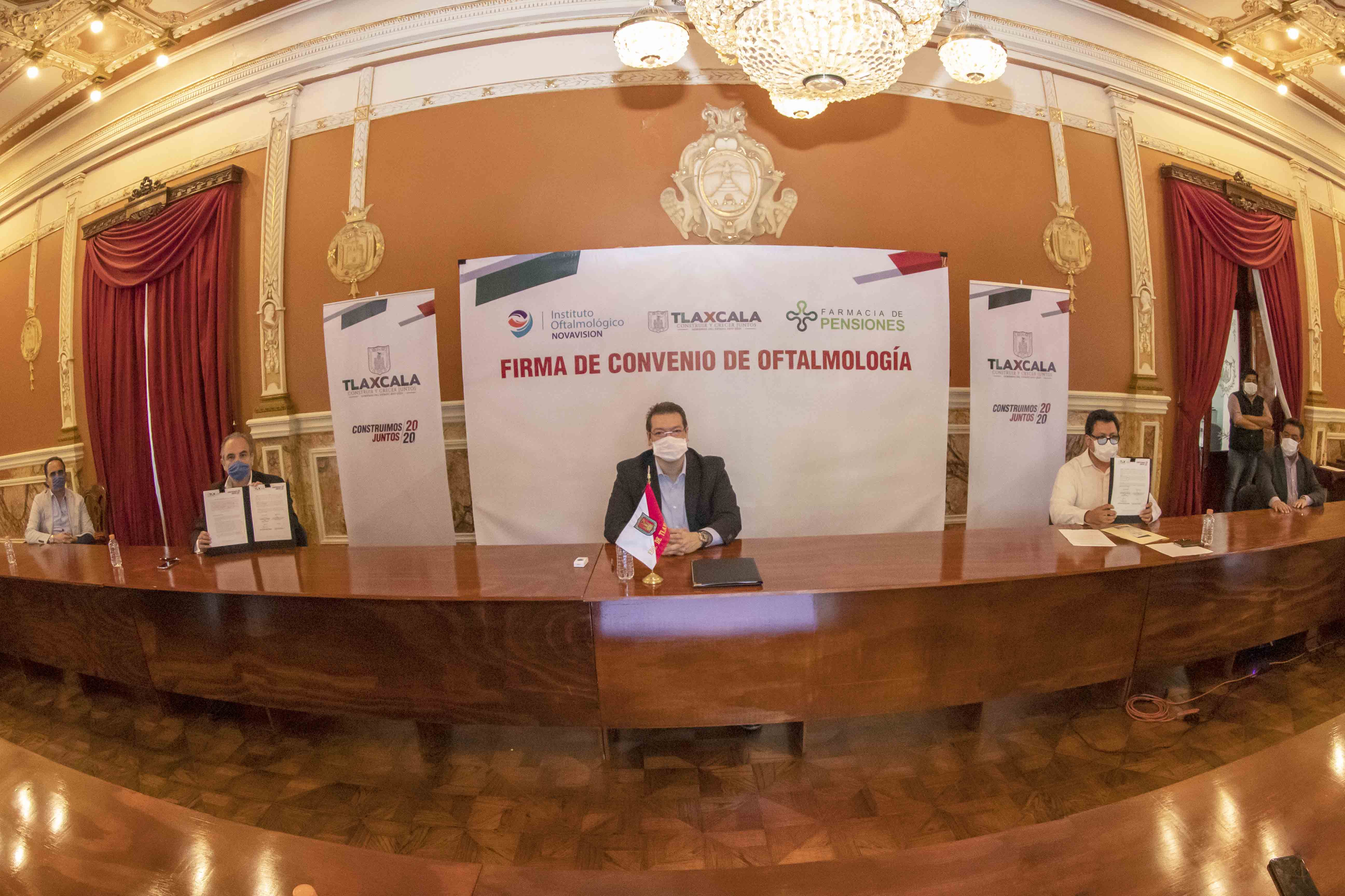 El Gobernador Marco Mena encabezó la firma del convenio entre Pensiones Civiles del Estado de Tlaxcala (PCET) y el Instituto Oftalmológico “Novavision”, con el que se fortalecen los servicios médicos en favor de trabajadores y jubilados estatales, así como de la población en general.