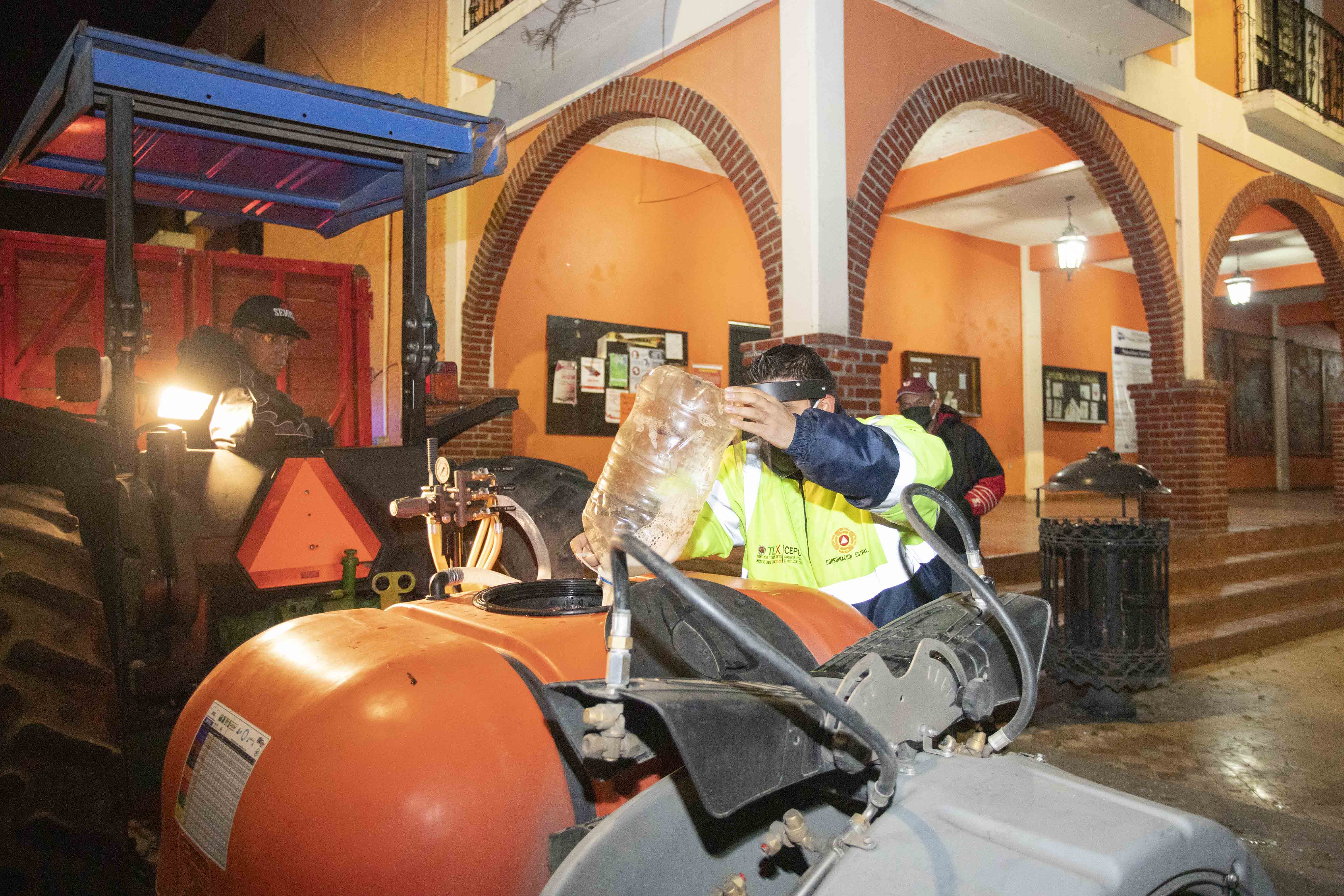 Brigadas de la Coordinación Estatal de Protección Civil (CEPC) sanitizaron calles de Tlaltelulco, Tetlanohcan, Texoloc, Tetlatlahuca, Tzompantepec, Cuaxomulco y Tlaxco.
