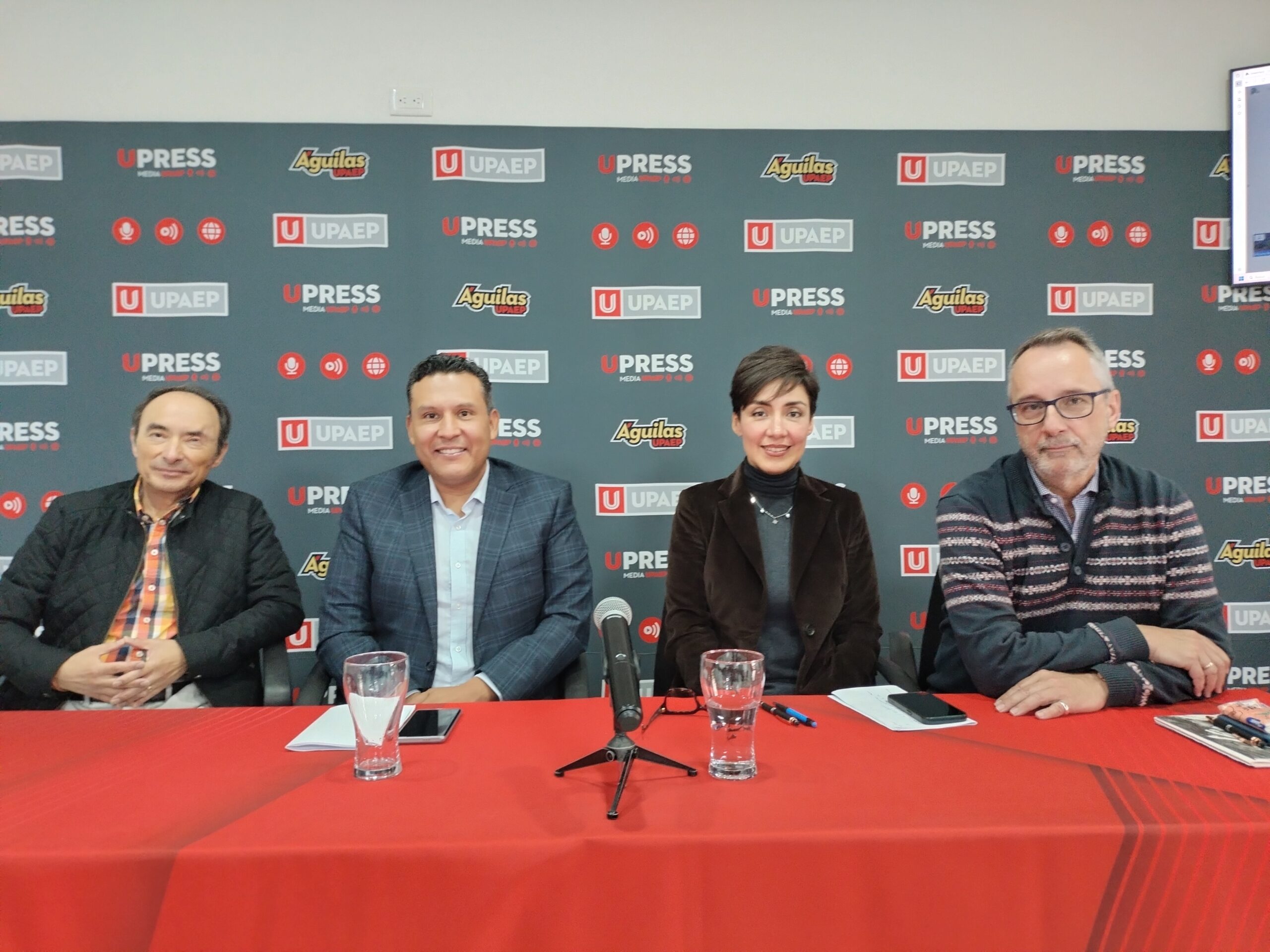 Participaron en conferencia de prensa el Dr. Derzu Daniel Ramírez Ortiz, Director de la Licenciatura en Relaciones Internacionales de la UPAEP; el Dr. Herminio Sánchez de la Barquera, profesor investigador de la misma facultad; el Dr. Claude Denis, profesor de Sociología de la Universidad de Ottawa, Canadá, e integrante del programa Global Summer UPAEP; con apoyo en la traducción de la Dra. Luisa Fernanda Grijalva Maza, también profesora de Relaciones Internacionales de la universidad.
